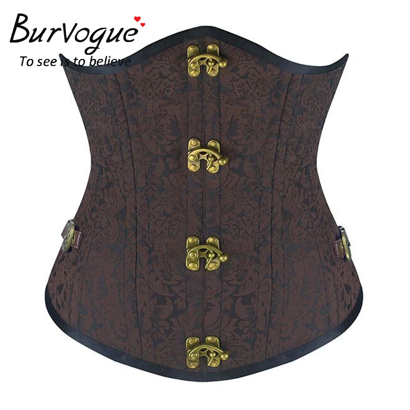 Best . (53% Off) Buy Burvogue Steampunk Corset Brown Black Steel Bone Underbust Corsets Dobby Corselets Sexy Waist Slim Bustiers Waist Cincher corset Cheap Online.