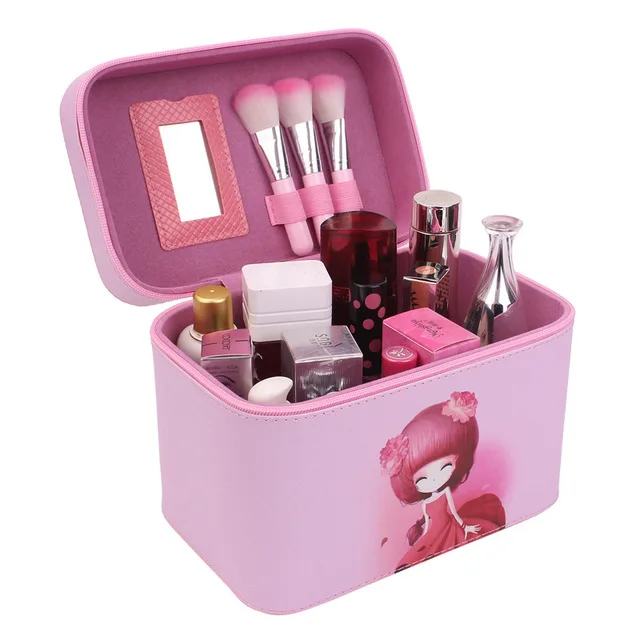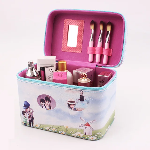 Product Name: Cute Pattern Iron Tower Women Makeup Box Professional Portable Zipper Large Cosmetic Bag Much Colors