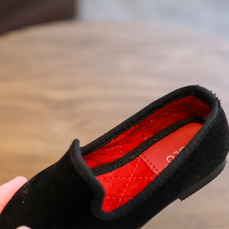 Product Name: Kids Velvet Shoes Autumn Winter Black Quality Handmade Elegant Vintage Dance School Boys Girls Casual Shoes Fashion Size 21 35