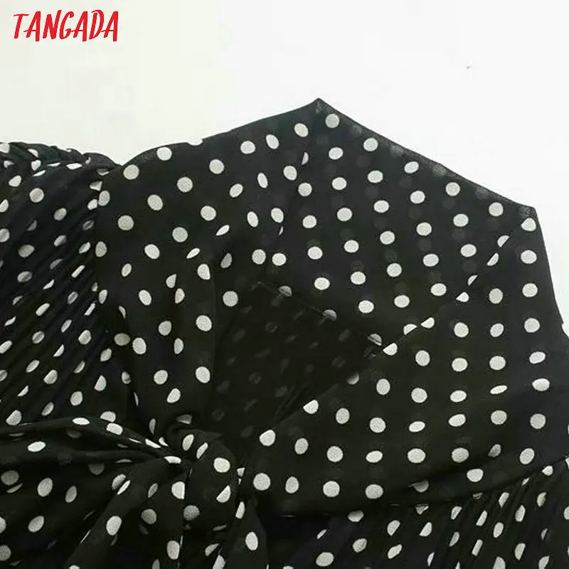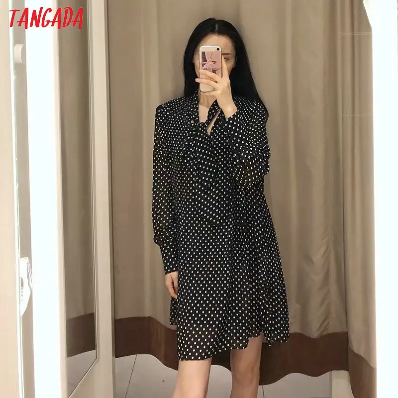 Special Offer Tangada women polka dot loose mini dress long sleeve vintage lady dress female bow tie dress vestidos 4M43 Discount 30% Today!