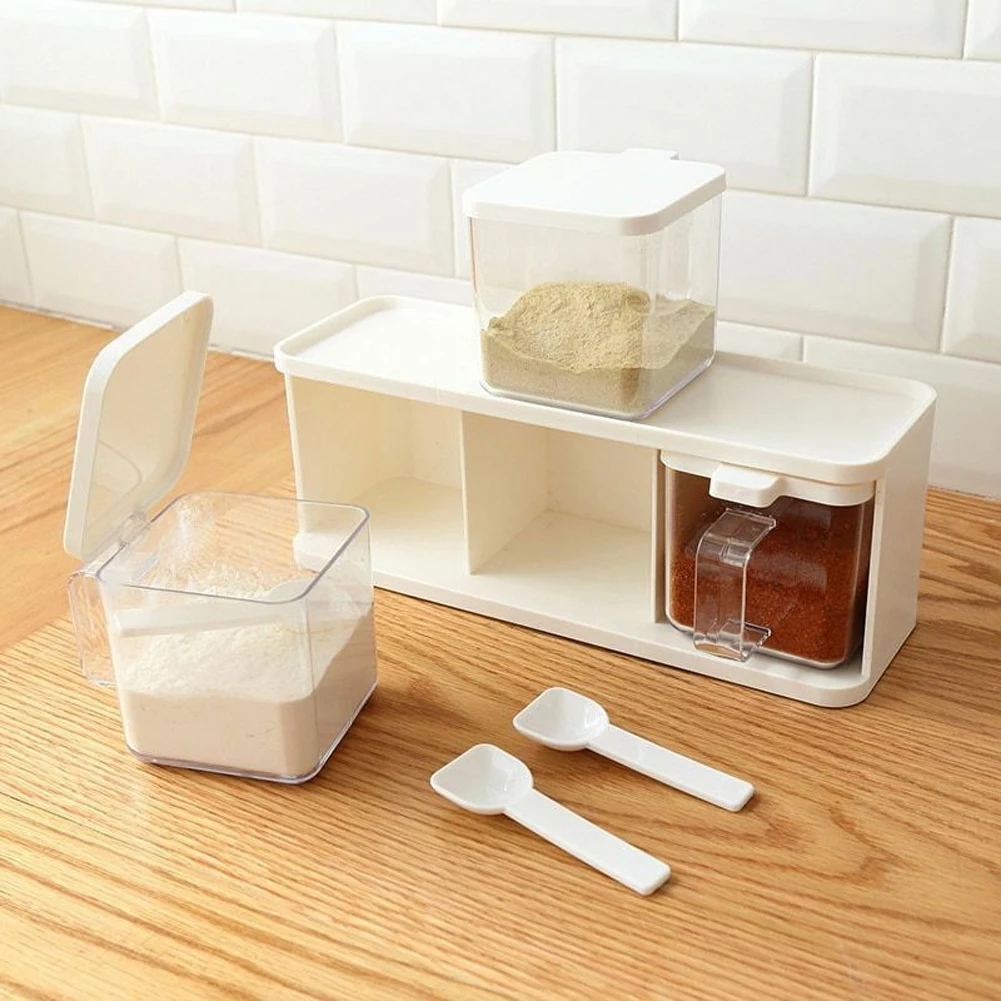 Special Offer Spice Rack 3 Grids Spoon Kitchen With Lid Container Seasoning Box Herb Spices Storage Condiment Jar Cooking With Handle Desktop Discount 24% Today!