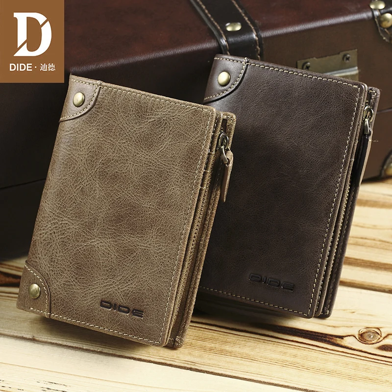 Special Offer DIDE Brand 100% Cowhide men s Wallets Male Purse Short Genuine Leather Zipper Coin Purse Wallet Card Holder Fine Gift Box Discount 54% Today!