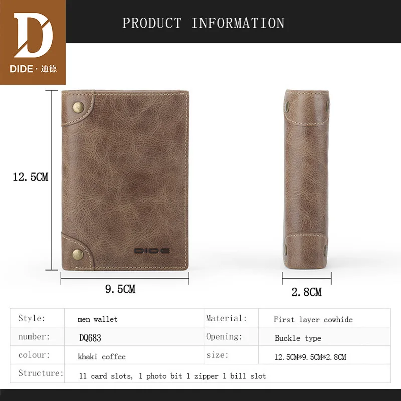 Product Name: DIDE Brand 100% Cowhide men s Wallets Male Purse Short Genuine Leather Zipper Coin Purse Wallet Card Holder Fine Gift Box